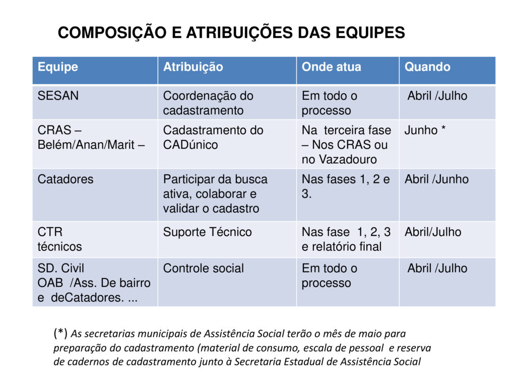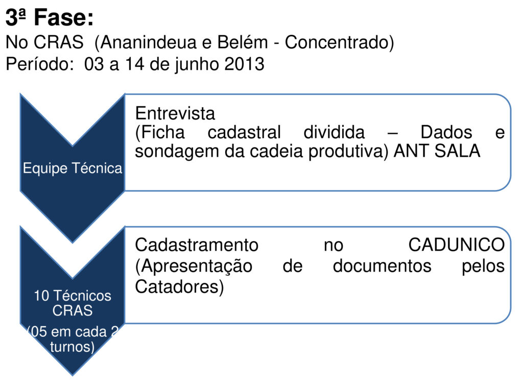 Todos os dados disponíveis na pesquisa foram entregues para a Sesan e todos os catadores foram encaminhados para a Funpapa para devido cadastro no Cadastro Único do Governo Federal.